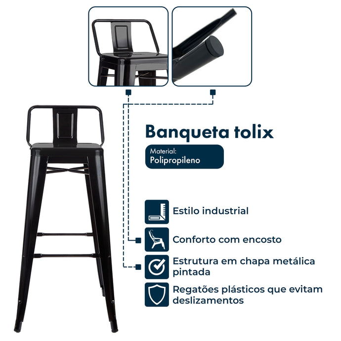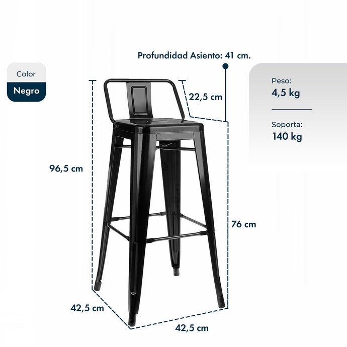 Banqueta Tolix Alta Con Respaldo Acero Garden Life Negra Ft580001