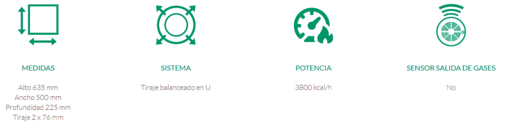 Cámara de combustión estanca al ambiente de instalación. Apto para baños y dormitorios.