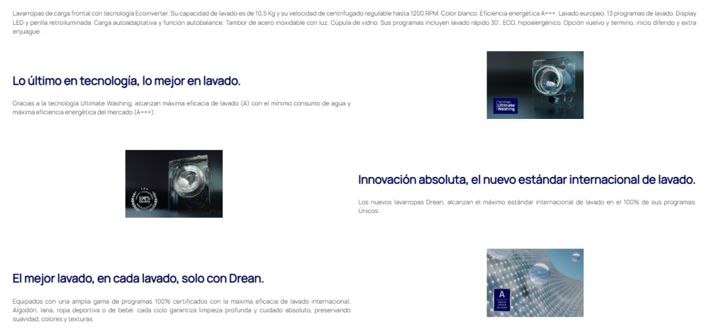 Lavarropa Carga Frontal Drean Inverter 10,5 KG - 1200 Rpm Blanco Lcfdr1012sb0