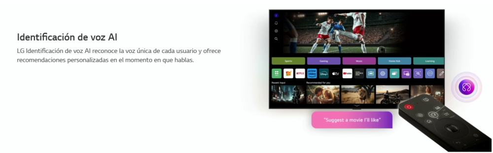 Controla fácilmente tu TV con AI Magic Remote, sin dispositivos extra. Con un sensor de movimiento y una rueda de desplazamiento, apunta y haz clic para usarlo como un ratón o simplemente di los comandos de voz.