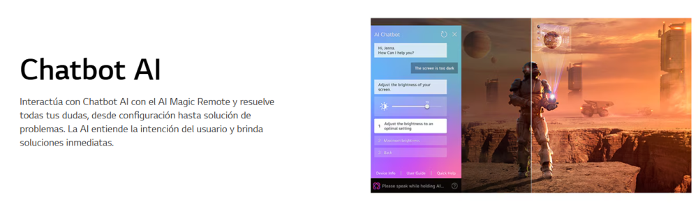 El poderoso procesador de LG impulsa la resolución a la calidad original. Disfruta la resolución, el brillo y la claridad mejorados del Super Escalador 4K.